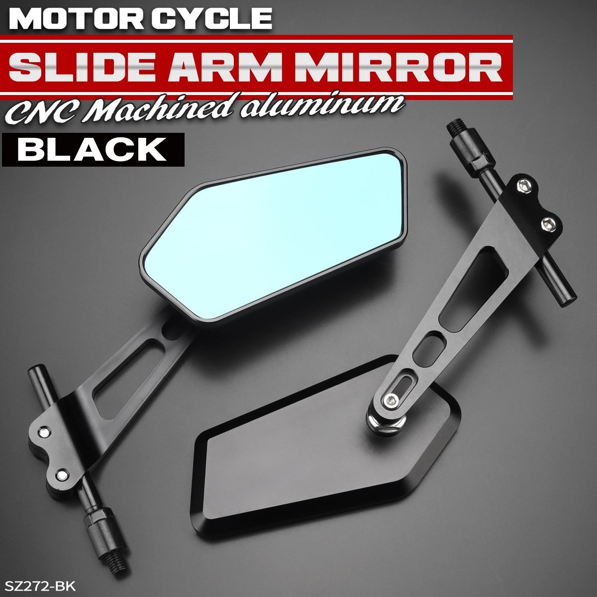 - 汎用 スライド ミラー アルミ削り出し M8 M10 正 逆ネジ アダプター付き 左右セット ブラック SZ272-BK
