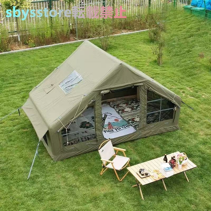 - エアーテント 大型 2-4人用 インフレータブルテント 煙突穴付き ロッジテント 防水 4シーズン アウトドア 収納袋・ペグ・空気入れ付き