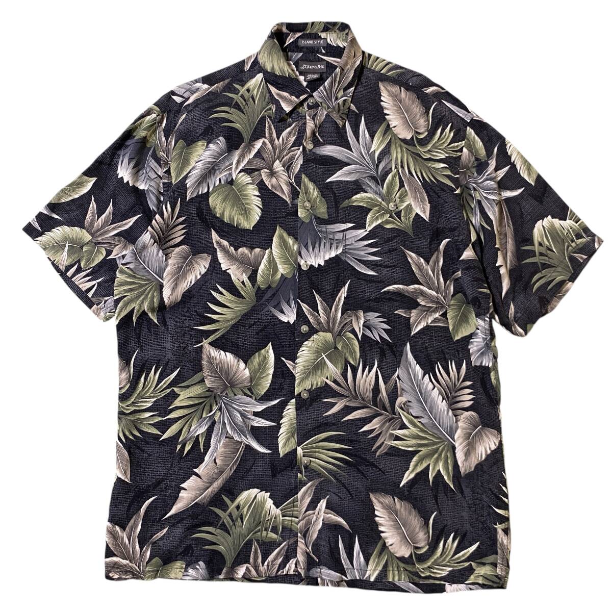 - アメリカ古着 セントジョンズベイ アロハシャツ リーフ柄 ブラック レーヨン Mサイズ ハワイアン 【AL343】