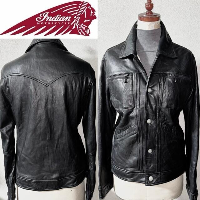 - 即落送料無料 美品 lndian インディアン 定価5万円程 羊革 ラム レザー ジャケット M ライダース アメリカンバイク アメカジ ワーク ルード
