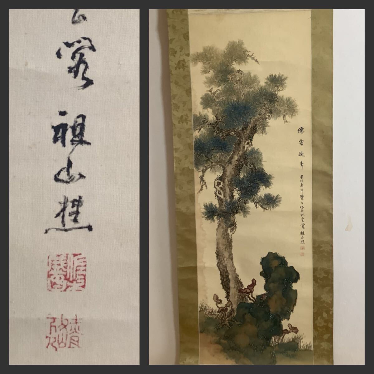 - 【模写】掛軸Sep724B[佐々木祖山 僊泉延年図]着色絹本 書いたもの 共箱/日本画 山水図 南宗画家 村田香合師事 盛昌 古書