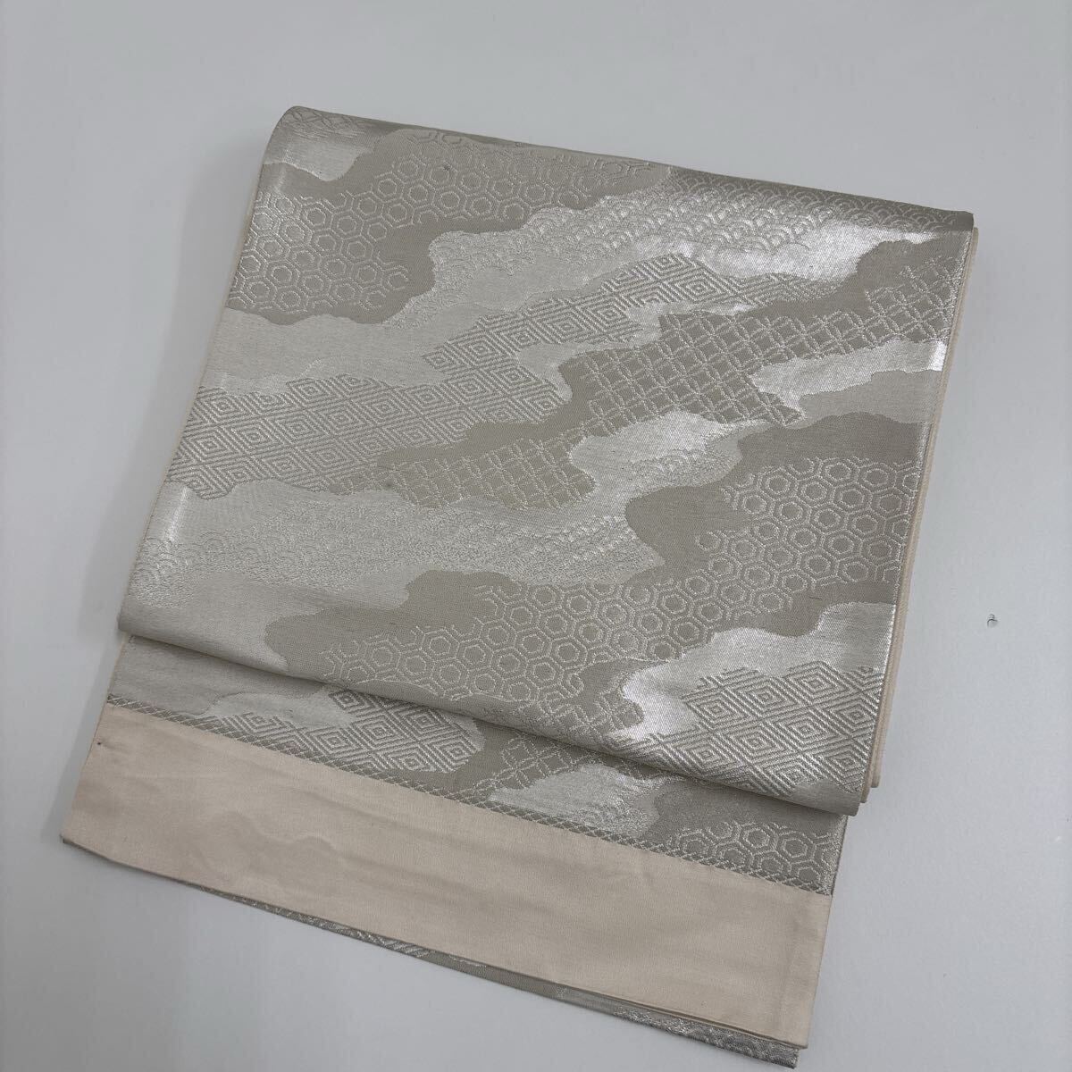 > 袋帯 西陣織物 上品な銀彩織出し 未仕立て 正絹 W-4205