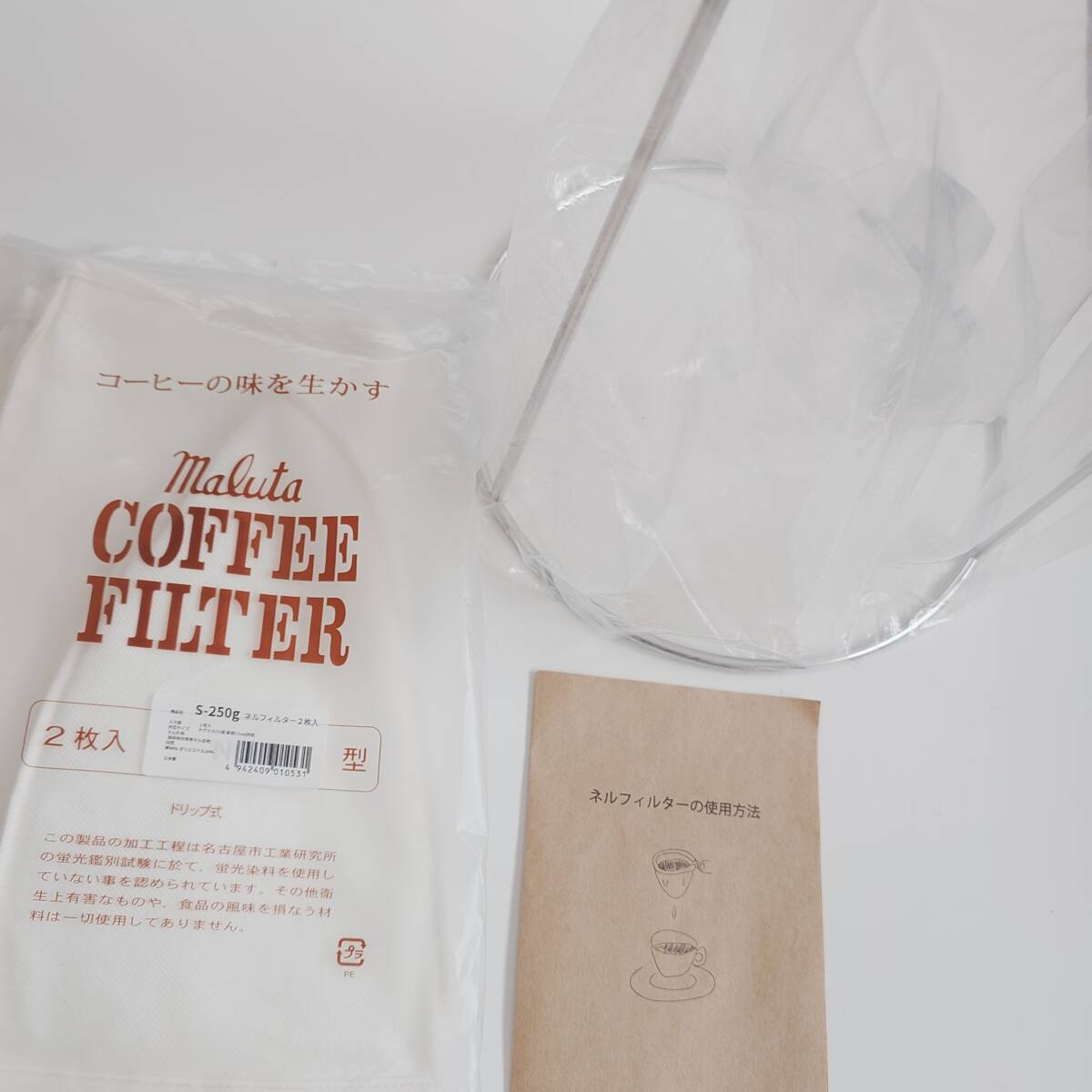 - 宅急便送料無料 珈琲抽出用品 (コーヒースタンド EBM 18-8 ヤグラ) (Maluta ネルフィルター 2枚入 S-250g 丸太衣料) 未使用品