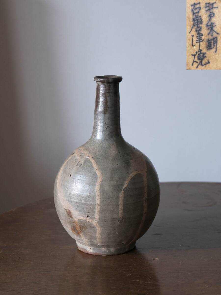 - 【青枠】江戸時代 古唐津焼 二川焼 打ち刷毛目 鶴首徳利 花瓶 華道具 古道具 時代物 美術品Q1912