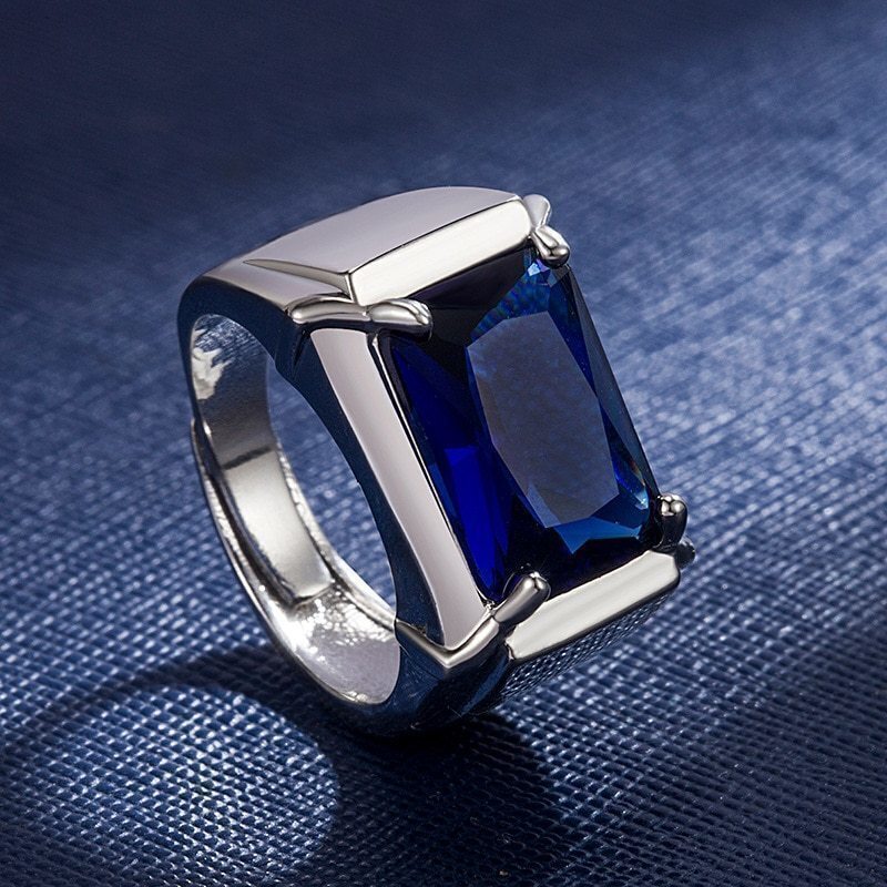 - メンズ 指輪 リング 青×シルバー フォークリング オープンリング シンプル ゴツい 太め きれい