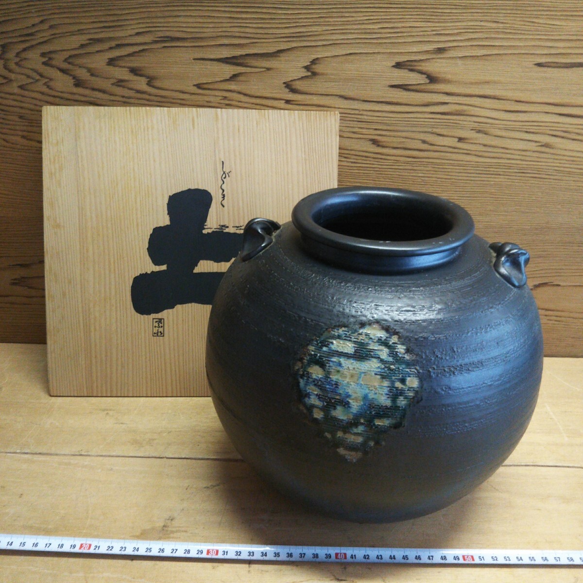 > 25090609 信楽焼 黒窯元変花瓶 花器 花瓶 壷 信楽焼 土 陶芸 陶器 花入 コレクション