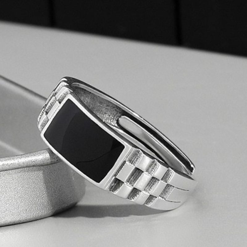 - メンズ 指輪 リング 黒×シルバー フォークリング オープンリング シンプル きれいめ おしゃれ