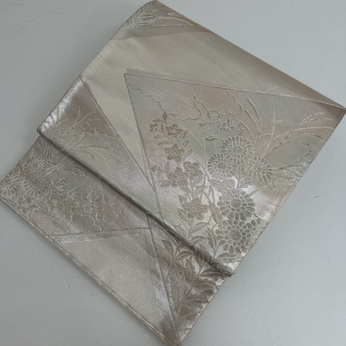 - 袋帯 銀彩の上品な草花織出し 正絹 W-4176