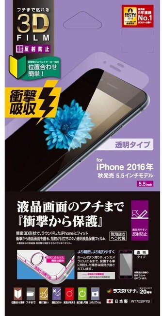 - ラスタバナナ iPhone8Plus iPhone7Plus フィルム 全面保護 衝撃吸収 反射防止 アイフォン7プラス 液晶保護フィルム WT777IP7B