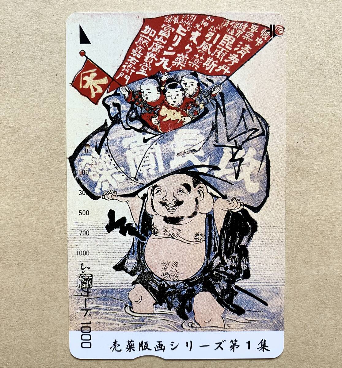 - 【使用済】 ふみカード 売薬版画シリーズ 第1集 唐子を背負って川を渡る布袋