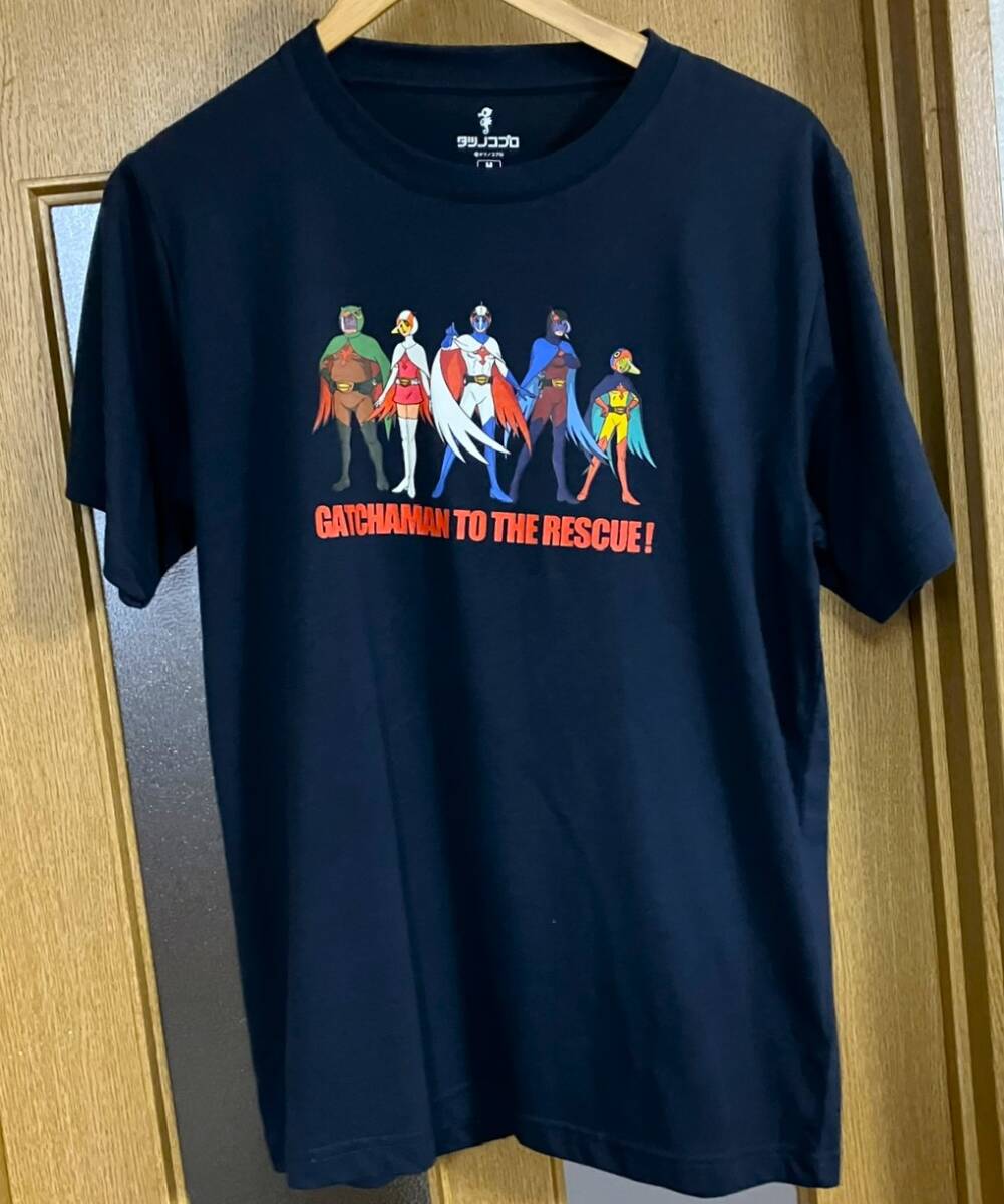 > 新品 タグ付き ガッチャマン Tシャツ メンズMサイズ ネイビー~黒 綿60% ポリエステル40%