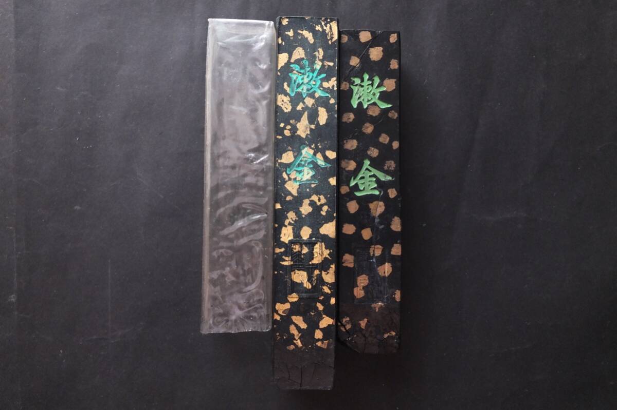 - # 古墨 唐物上海墨廠 尭千氏 漱金 2本213g 文房/書画/書道用 墨 #