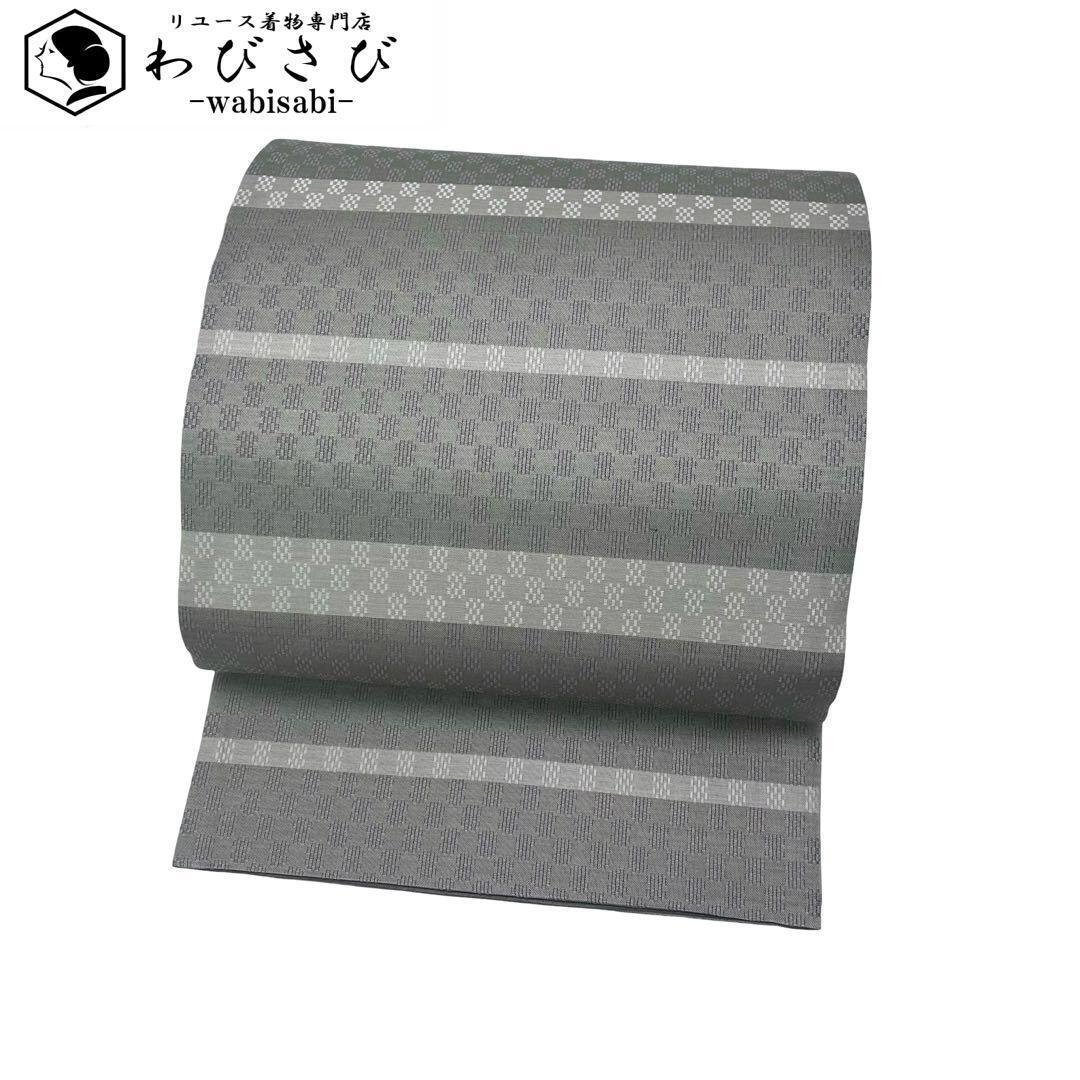 - 袋帯 リバーシブル 花織 横縞 モダン柄 モノトーン O-4062 着物 きもの kimono 和服 和装 中古 リサイクル着物 【送料無料】