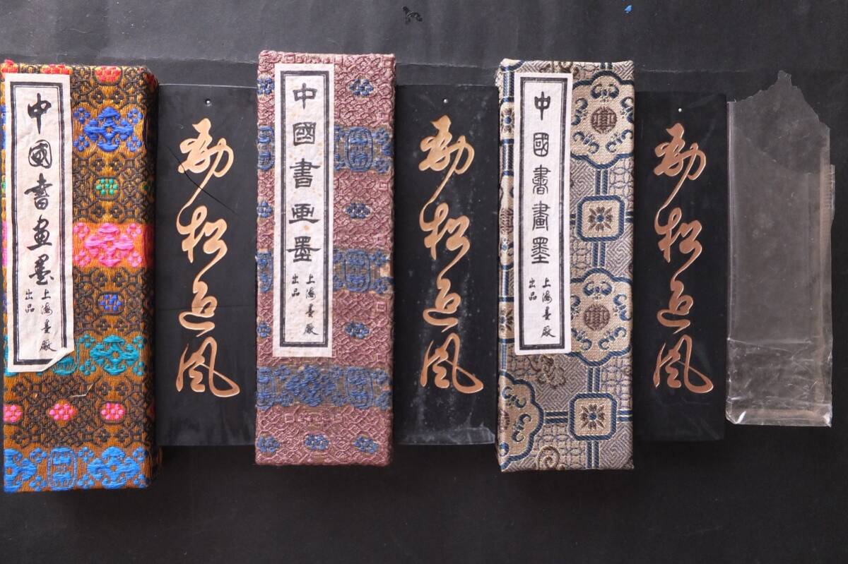 - # 古墨 唐物 中国古墨 勁松迎風 油煙103 上海墨廠 3本200g 書画書道 #