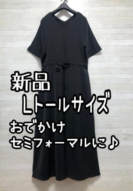 - 新品☆Lトールサイズ♪黒無地マキシワンピース♪セミフォーマルにも☆G933