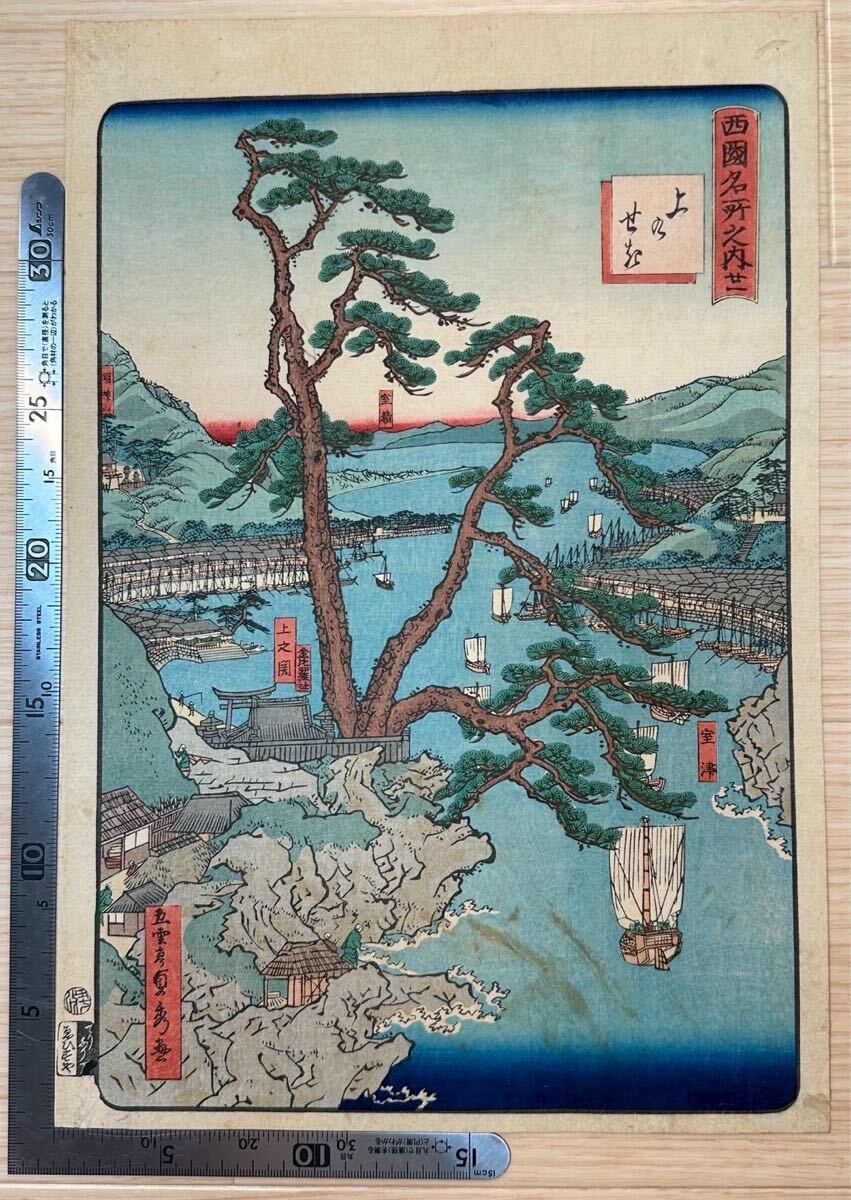 > 【真作】西国名所之内 二十一 上のせき 歌川貞秀 浮世絵 ukiyo-e 木版画 風景画 名所絵 中国唐物唐本 古筆古文書和本 #838