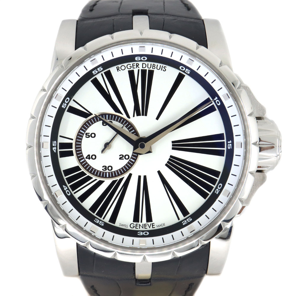 - 【栄】ロジェデュブイ エクスカリバー EX45 77 90 00/01R00B ホワイト 腕時計 SS レザー 自動巻き メンズ