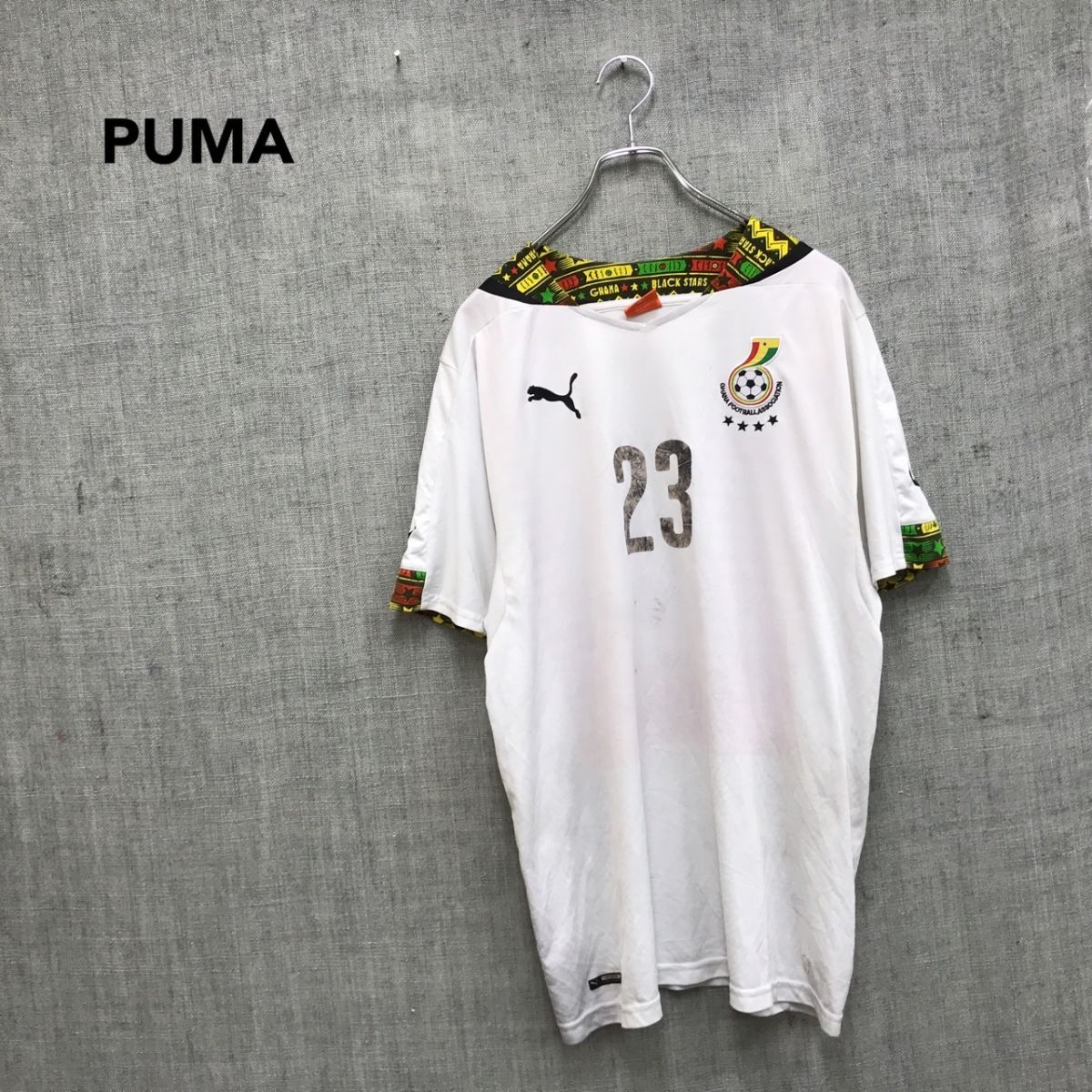 > 2K1303-N◆14年◆ PUMA プーマ ガーナ代表 ゲームシャツ ユニフォーム サッカー ◆sizeL ホワイト 総柄 ポリエステル