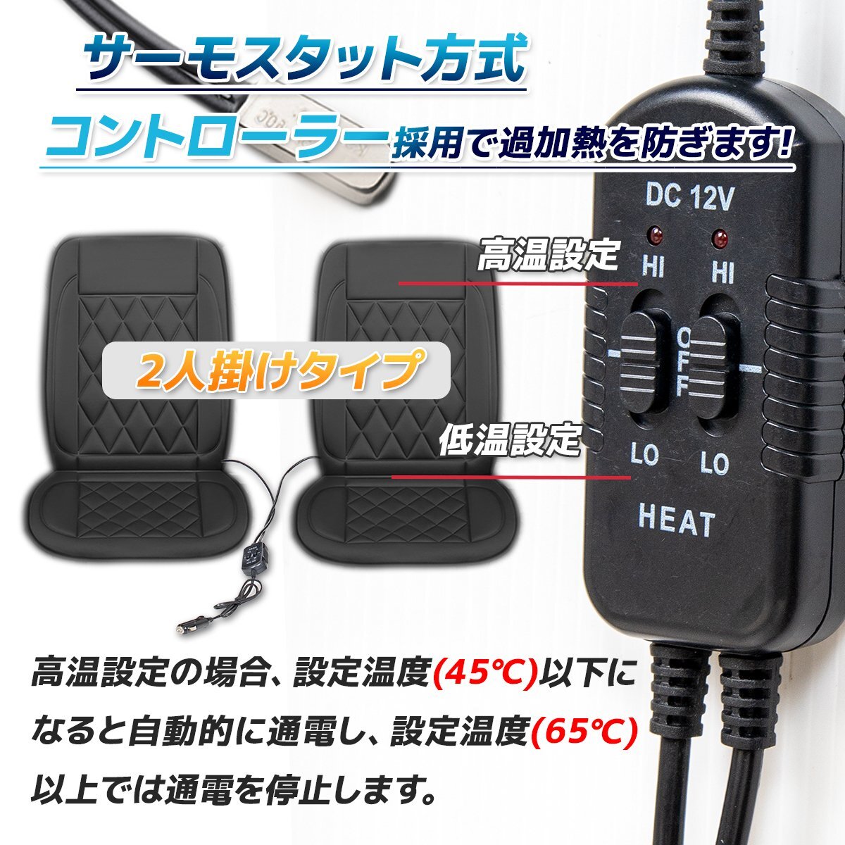 > 【送料無料】2枚セット ★運転席+助手席用 12V専用 ホットカーシート 座席 シートヒーター 過熱保護 温度調整可!【選べる3色】黒完売!