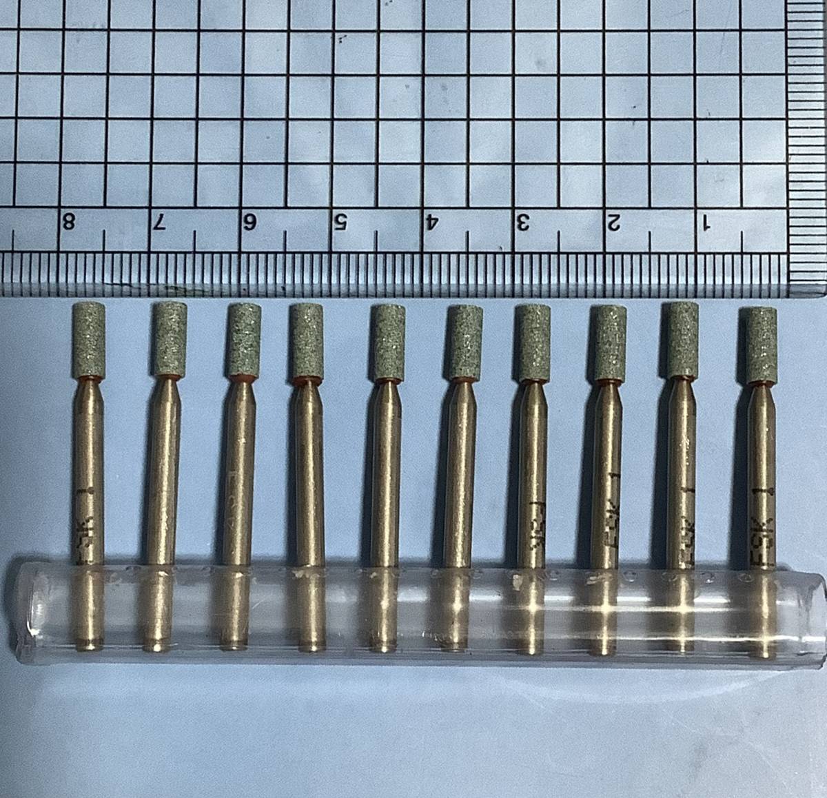 - エフエスケー FSK製 軸付き砥石 未使用新品 10個 A軸付砥石ネズミ色 外径3mm×厚さ8mm×軸径3mm×軸長30mm