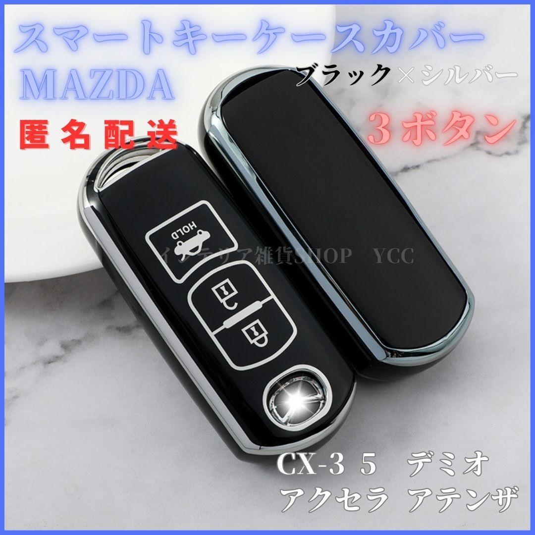 - MAZDAマツダ キーケースキーカバー CX-5/3 デミオ アクセラ アテンザ ロードスター スマートキー 3ボタン 黒銀