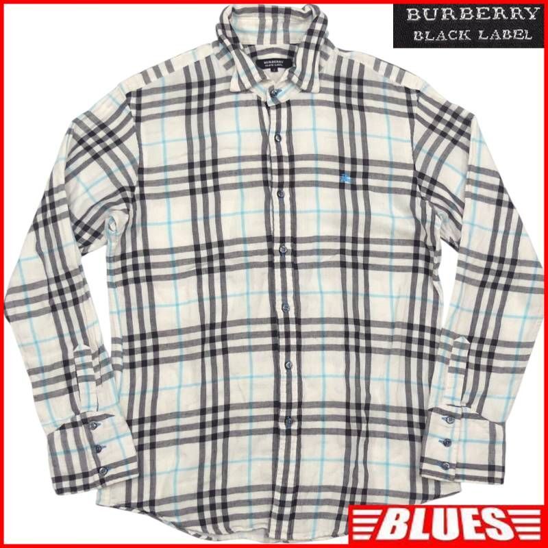 > 即決★BURBERRY BLACK LABEL★廃版 シャツ M バーバリーブラックレーベル 2 白 チェック 三陽商会 刺繍 長袖 日本製