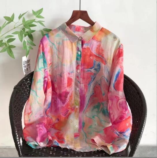 - 人気推薦 チュニック ワイシャツ 綿100% コットン ゆったり プリント花柄 オシャレ フリーサイズ ナチュラル 柄