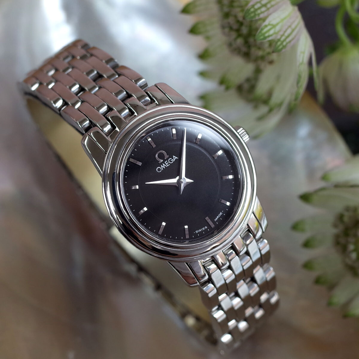 > オメガ デビル プレステージ 黒文字盤 SS 4570.51 7連ブレス クォーツ レディース 腕時計 1年保証