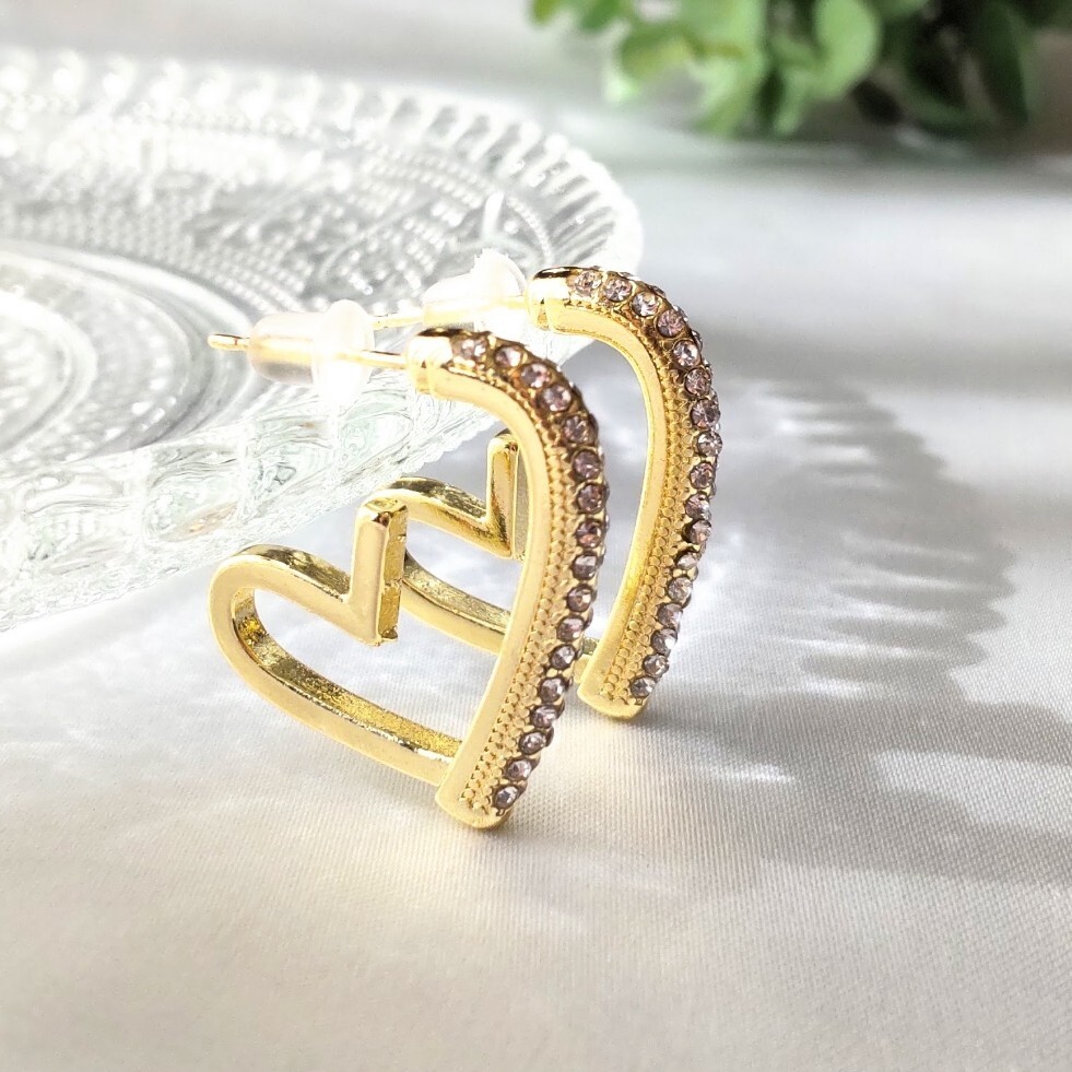 > キュービックジルコニア ハートフープピアス ゴールド キラキラ 韓国 匿名配送#151