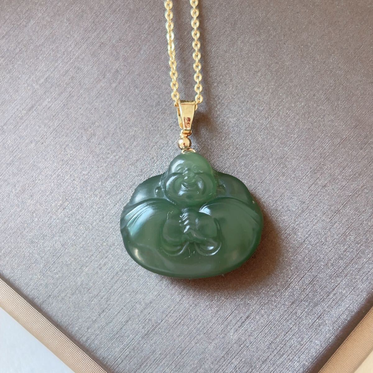 - 訳あり◇和田玉◇ヒスイ◇ネックレス◇ペンダント◇弥勒形◇お守り◇天然石◇パワーストーン◇巾着袋付き◇プレゼントにも020P997