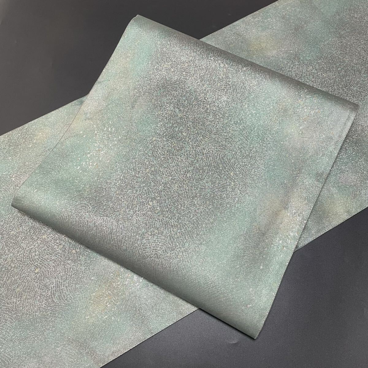 - #H984 美品 袋帯 六通 綴織 銀糸 立波 正絹 新橋色 フォーマル帯 和装 和服【wellriver】