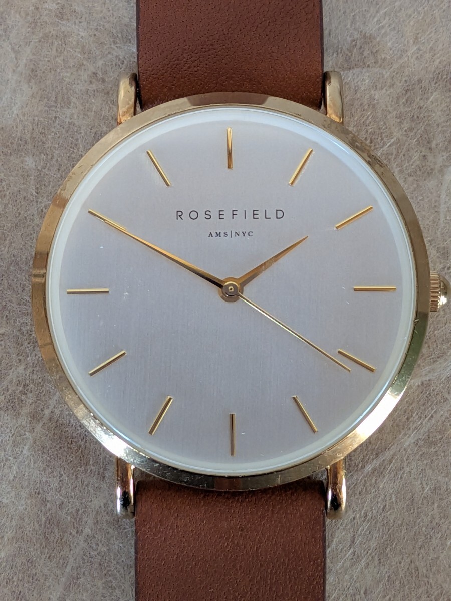 - ROSEFIELD クォーツ腕時計 アナログ 文字盤ホワイト ベルトキャメルシミあり RF124-W-27326【SH-41006】