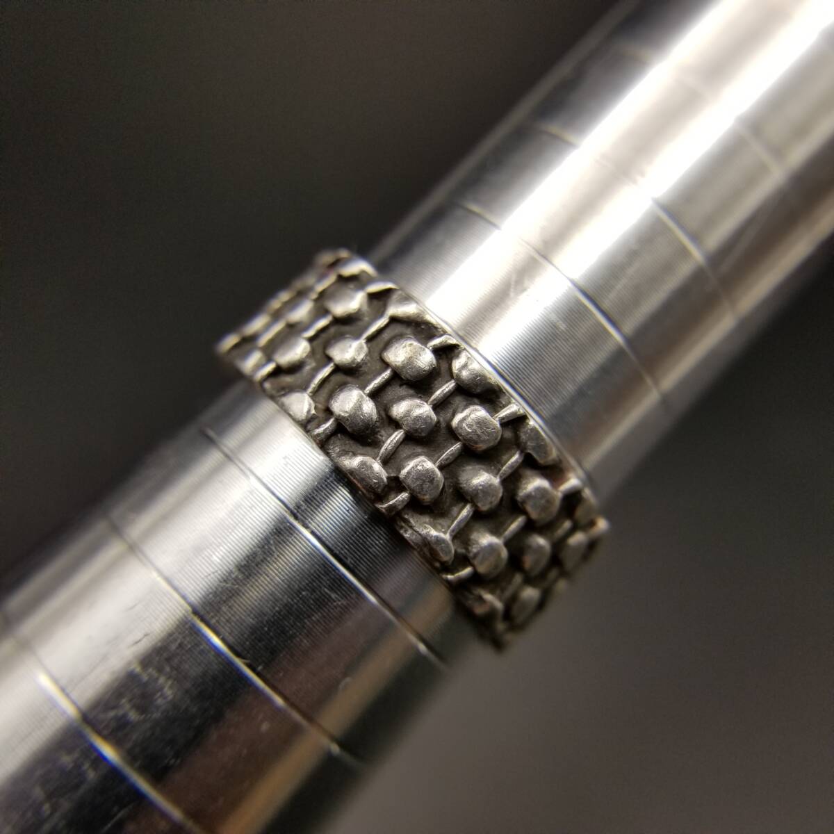 - チェーン ジッパー模様 ハーフエタニティ 925 シルバー ヴィンテージ バンド リング 銀 指輪 幅広 メンズジュエリー Y24-O