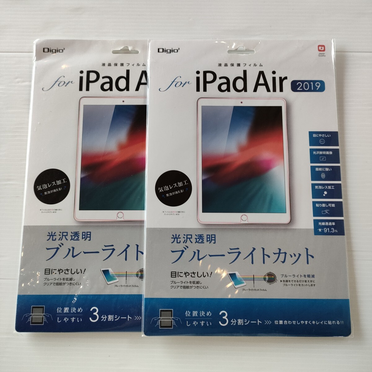 - 【未使用】液晶保護フィルム iPadAir2019用 光沢透明 ブルーライトカット 2個セット
