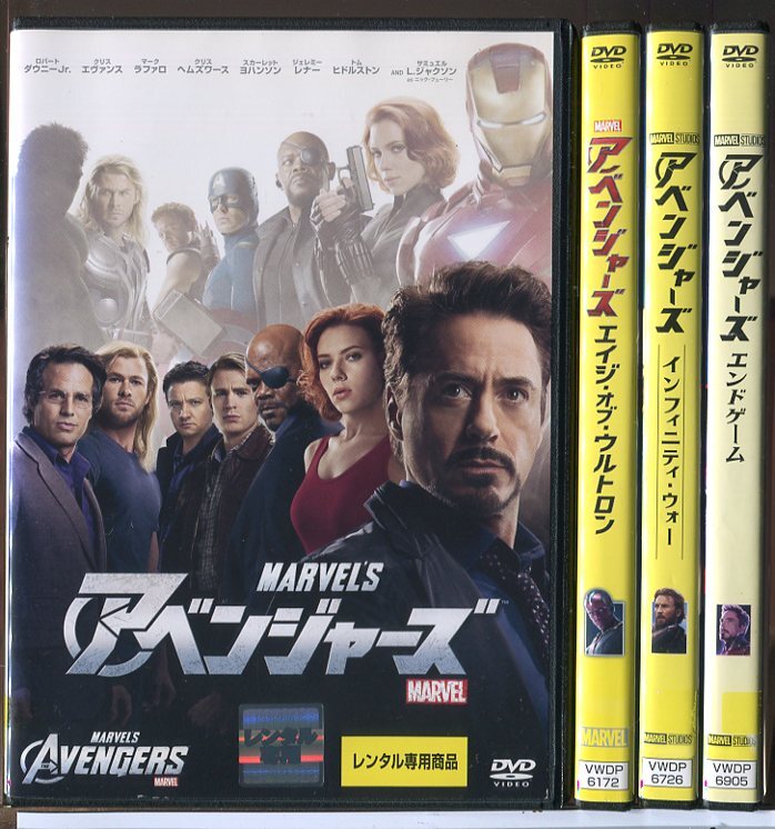 > アベンジャーズ +エイジ・オブ・ウルトロン+インフィニティ・ウォー+エンドゲーム 4巻セット/DVD 中古 レンタル落ち/c6661
