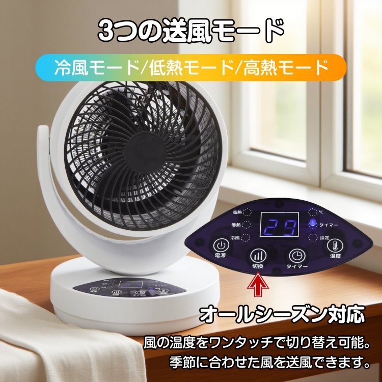 - サーキュレーター 冷暖タイプ ファンヒーター 3つ送風モード 20℃~40℃対応 左右自動首振り タイマー付き リモコン付き 過熱保護 衣類乾燥