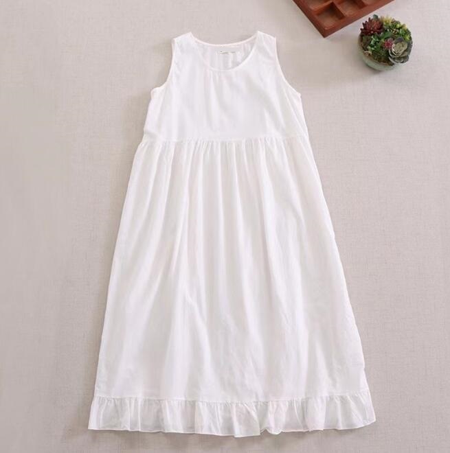 - 新入荷着丈125ノースリーブワンピース裾広がる フリーサイズ ゆったり高質綿100% コットン ナチュラル 通気性肌触り抜群 重ね着に 白色