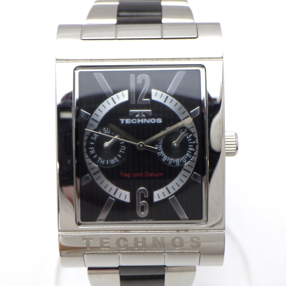 > 25-H-157【未使用】TECHNOS テクノス メンズ腕時計 T2046 クォーツ 稼働品 ブラック文字盤 ヴィンテージ デッドストック