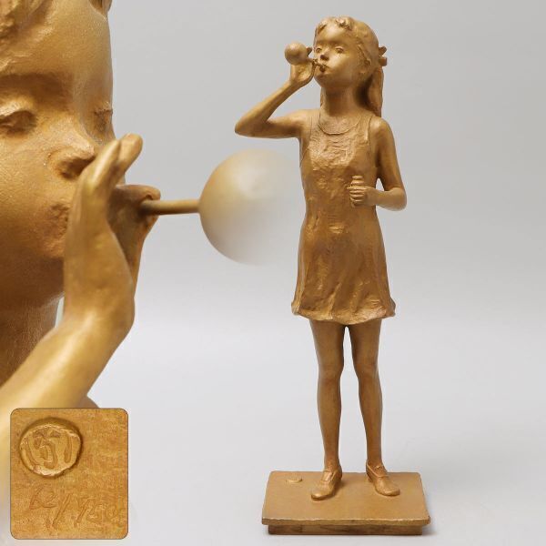 彫刻家【矢野秀徳】ブロンズ像 しゃぼん玉 女の子 62/950 置物 高さ35.5cmの出品です。
