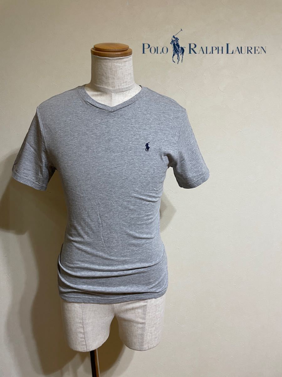 - Polo Ralph Lauren ポロ ラルフローレン Vネック Tシャツ トップス ジャニアサイズL (14-16) 半袖 グレー