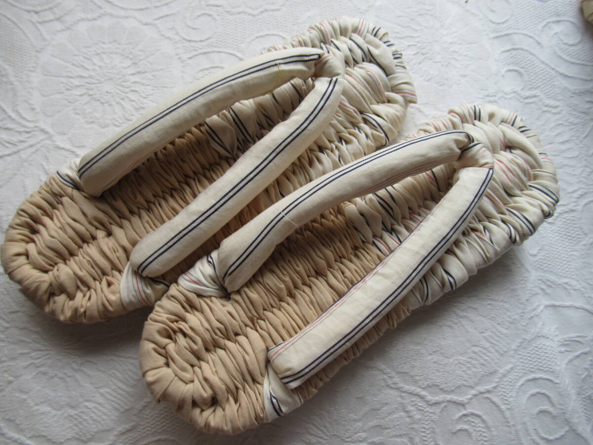 - 手作り 布草履 布ぞうり ストライプと無地の編み込み地 共布の鼻緒 26cm