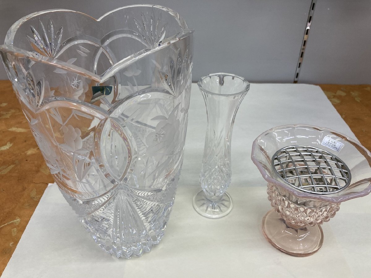- 09-09-452 ★ AT HOYA クリスタル花瓶 18㎝一輪挿し センターピース 花器 花瓶 3点セット ギフト プレゼント 未使用品