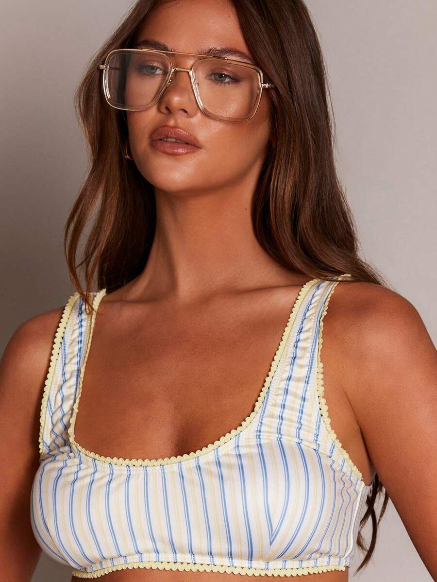 - レディース 水着 トップス _ 女性用 ストライプ柄サテンブラレット、春夏用