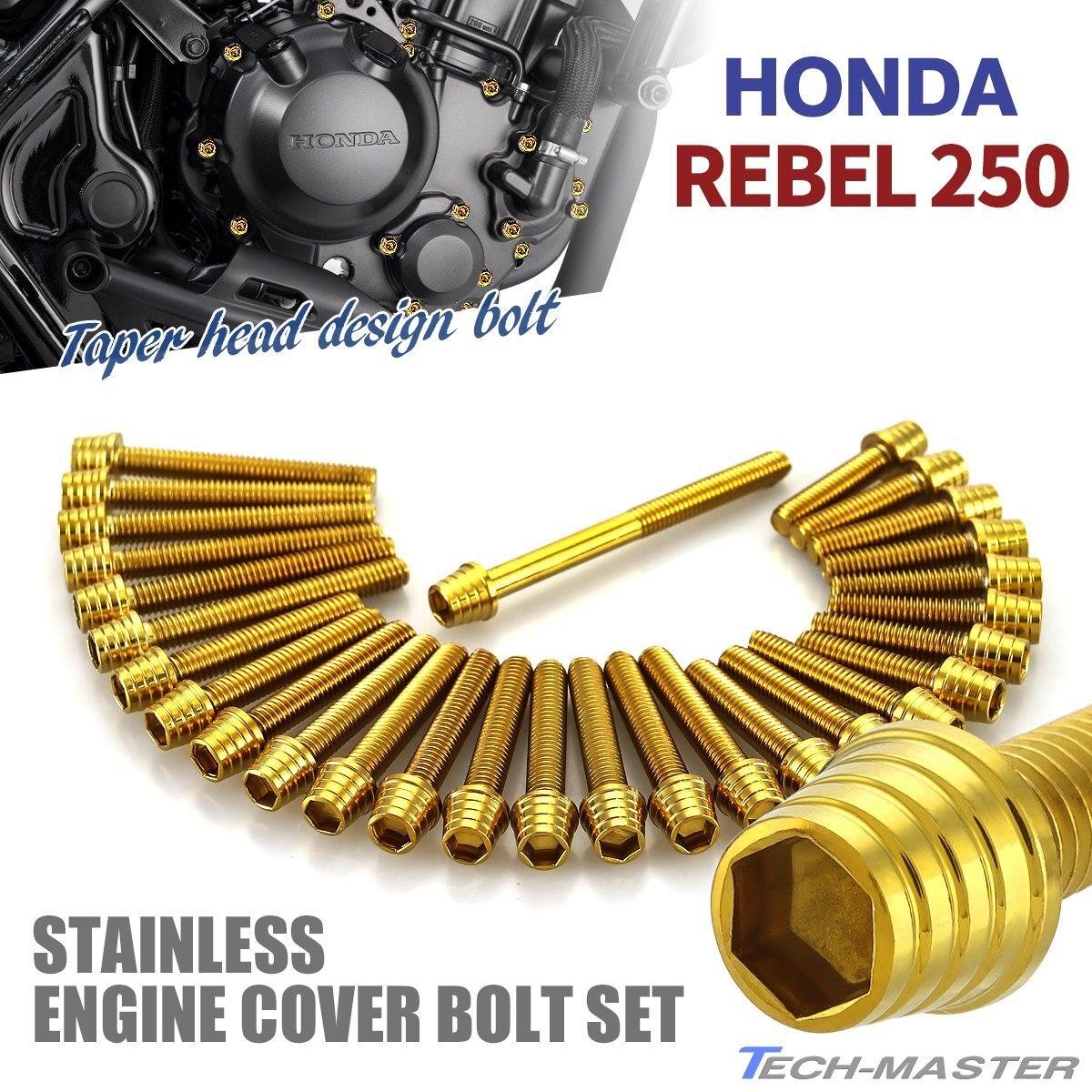- レブル250 REBEL 2023年~ エンジンカバー クランクケース ボルト 29本セット ステンレス製 ホンダ車用 ゴールドカラー TB12177