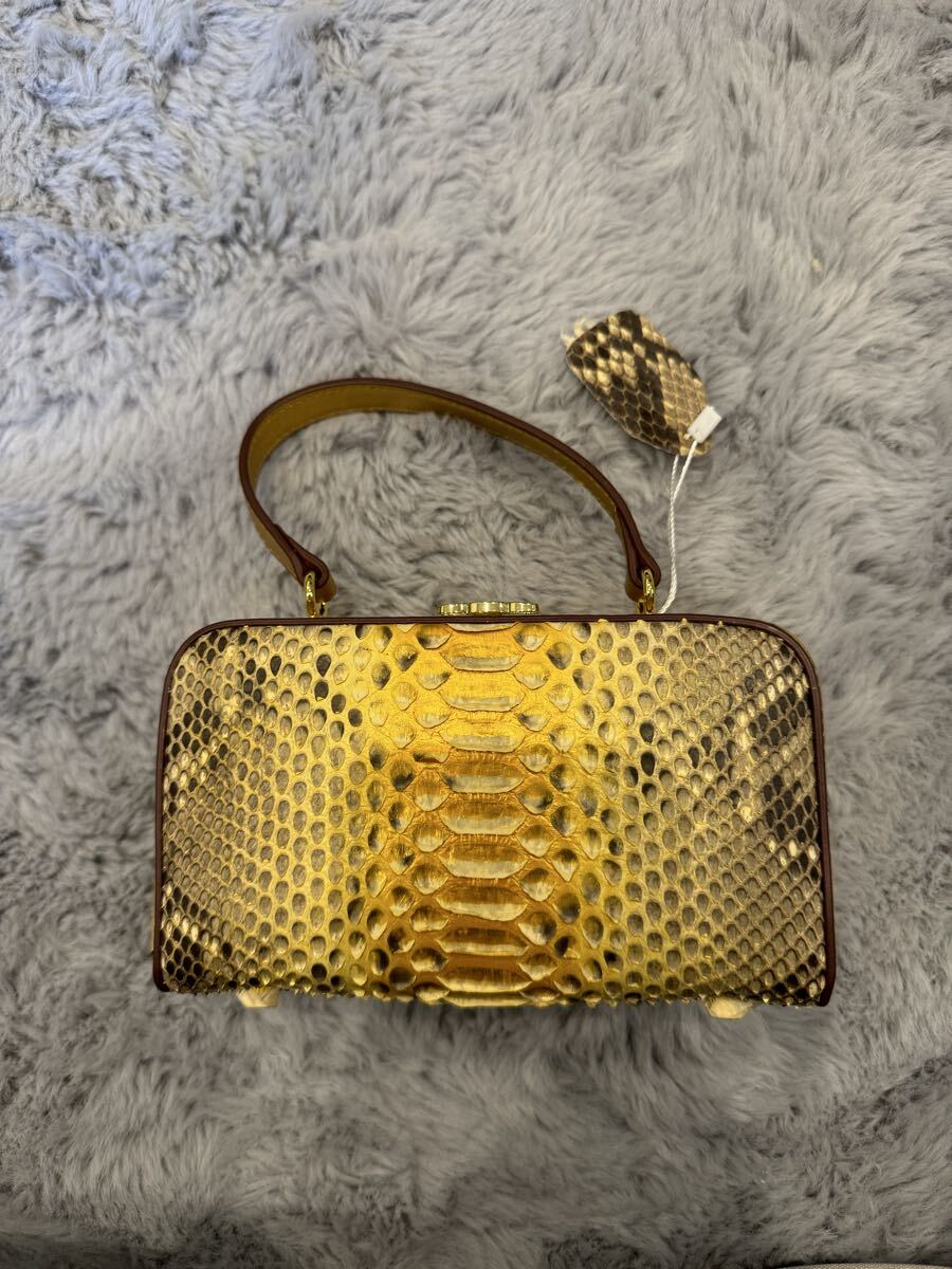- 職人手作り 一点物 ゴールド パイソン 蛇革 ショルダーバッグ