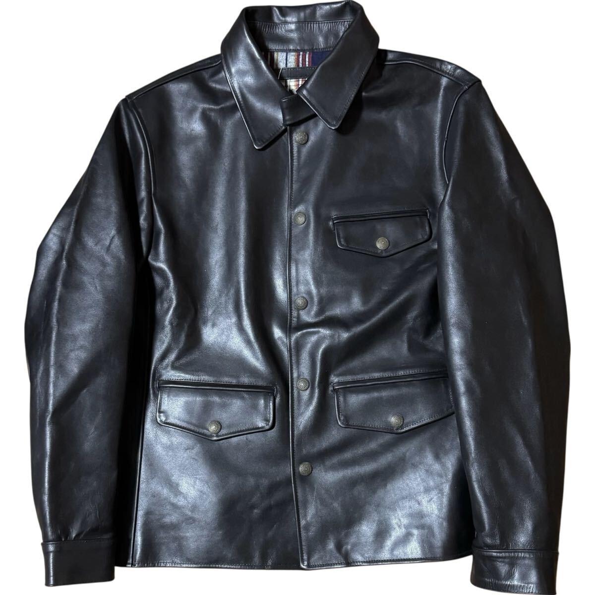 - 美品 FORTIME 馬革 レザージャケット カーコート 2XL ブラック ホースハイド 裏地チェック ブレーキマン