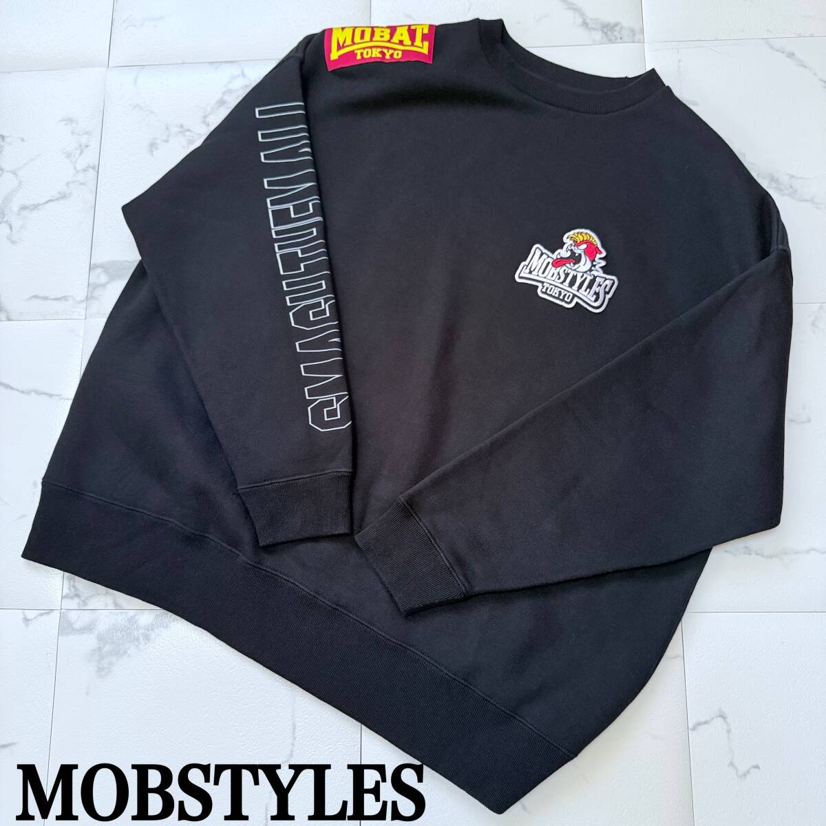- ★ MOBSTYLES TOKYO モブスタイルス ロゴ ワッペン付 裏起毛 スウェット トレーナー ブラック サイズ LARGE 美品 ★