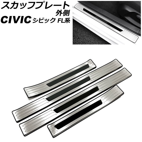 > スカッフプレート 外側 ホンダ シビック FL1 タイプR不可 2021年09月~ カラー4 ステンレス製 入数:1セット(4個) AP-SG313-COL4