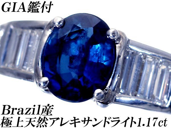 > 【ジュエリー極】GIA鑑 極上品ブラジル産 超極上天然アレキサンドライト1.17ct &上質ダイヤ 超高級Pt900リング h7779rml【送料無料】