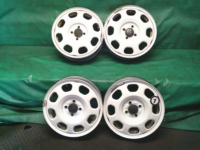 備考1:純正スチールホイール/4本セット/15インチ/幅4.5J/4穴/PCD100/オフセット+45/縁擦傷30cm(1)/バランスウェイト跡色ハゲ、錆有